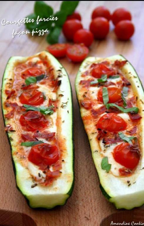 Déposez dans le creux de chaque moitié des courgettes,